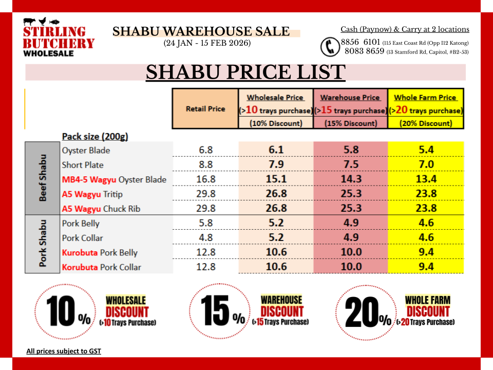 Stirling Butchery is located with Stirling Steaks SG at 115 East Coast Road & Capitol #B2-53